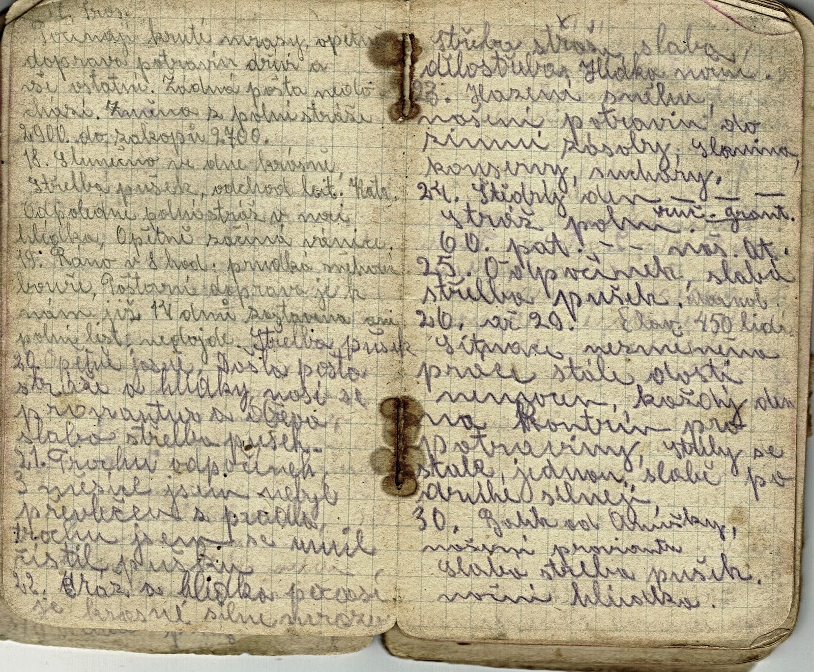 30. Balik od Anušky (babička), nošení proviantu. Slabá střelba pušek, noční hlídka.